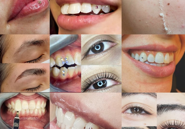 We also specialize in lash enhancements for a fuller, more defined look, as well as dental gems to add a unique, eye-catching touch to your smile. Our professional teeth whitening services help you achieve a brighter, more radiant smile with noticeable results.